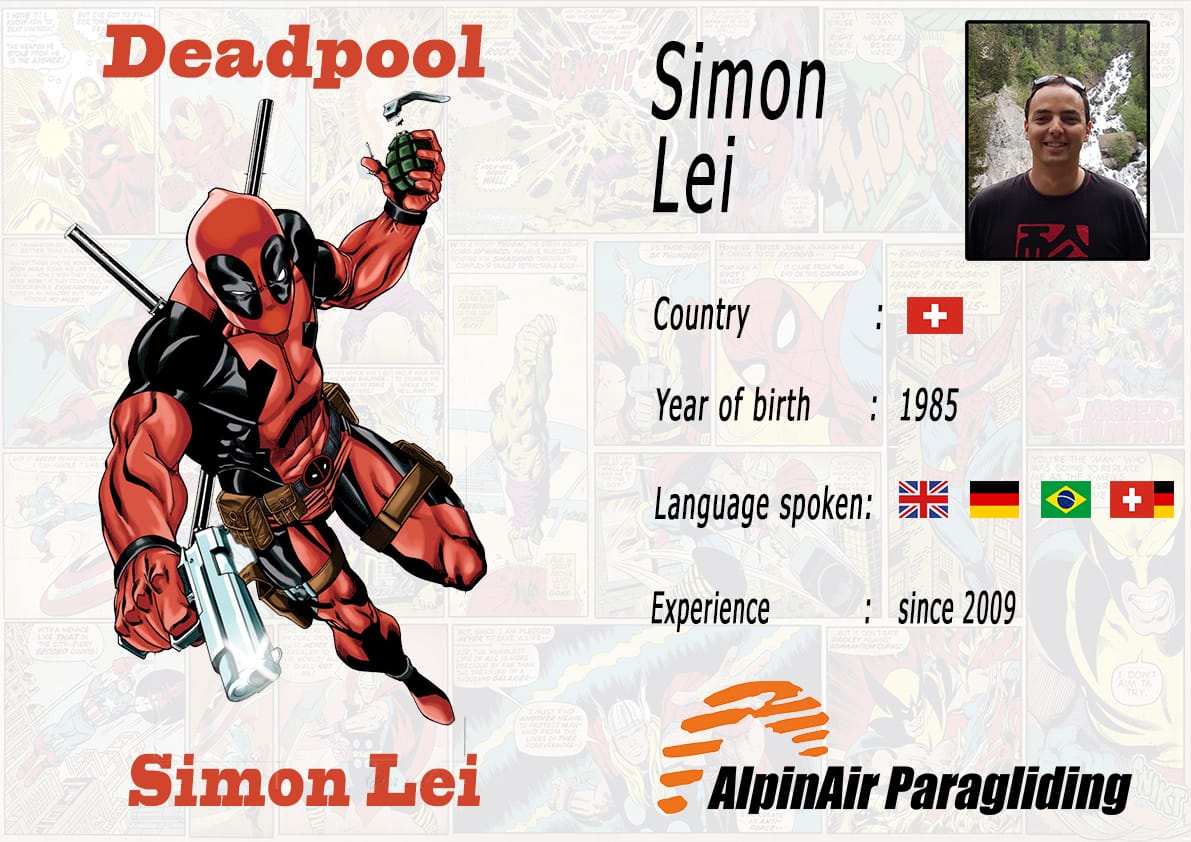 Then there are Deadpool, Elektra, the Green Lantern and the Hulk who forcefully and gracefully are AlpinAir paragliding superheros Simon Lei, Nicola Woods, Marc Herzig and Sebastien Bourquin.