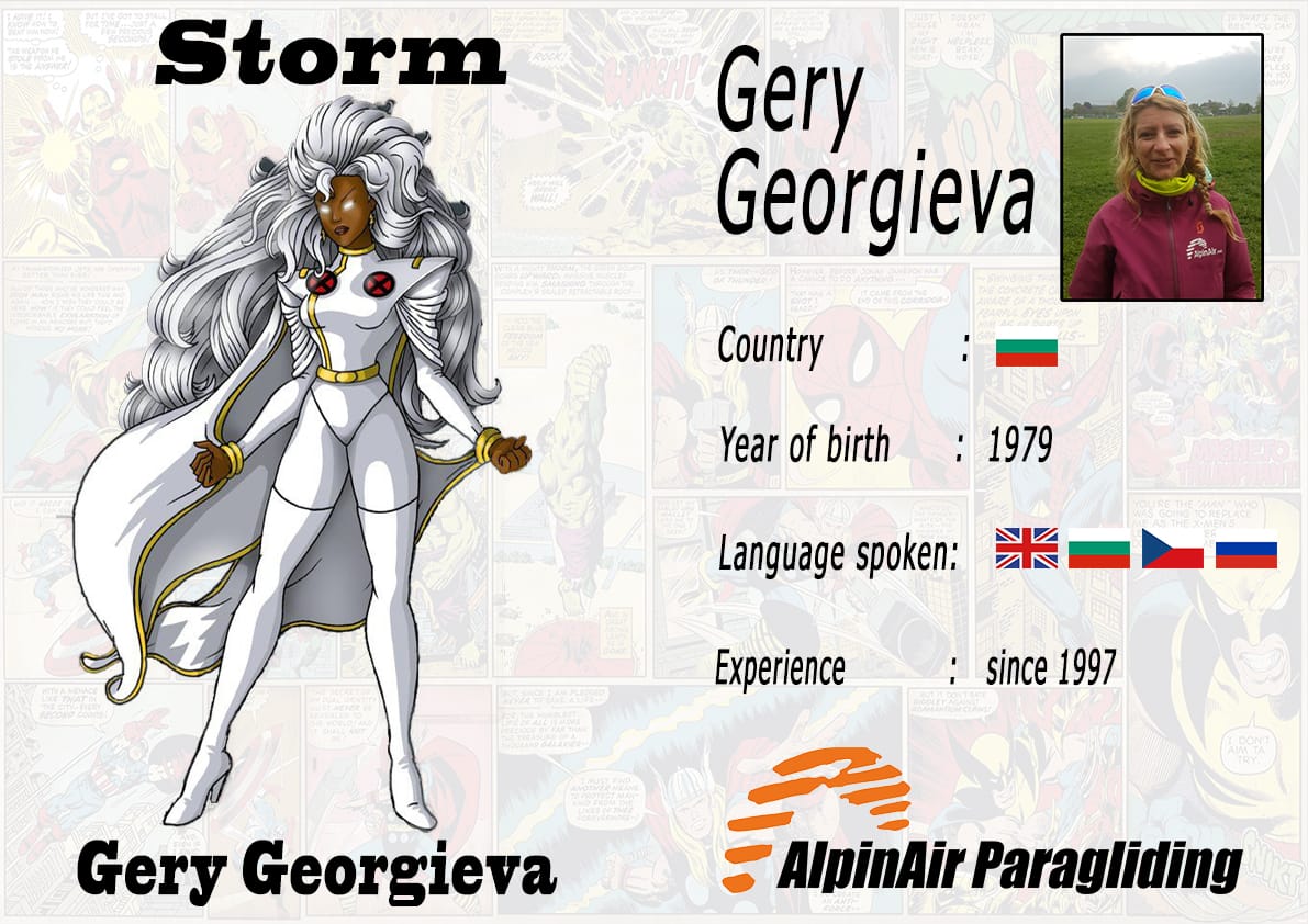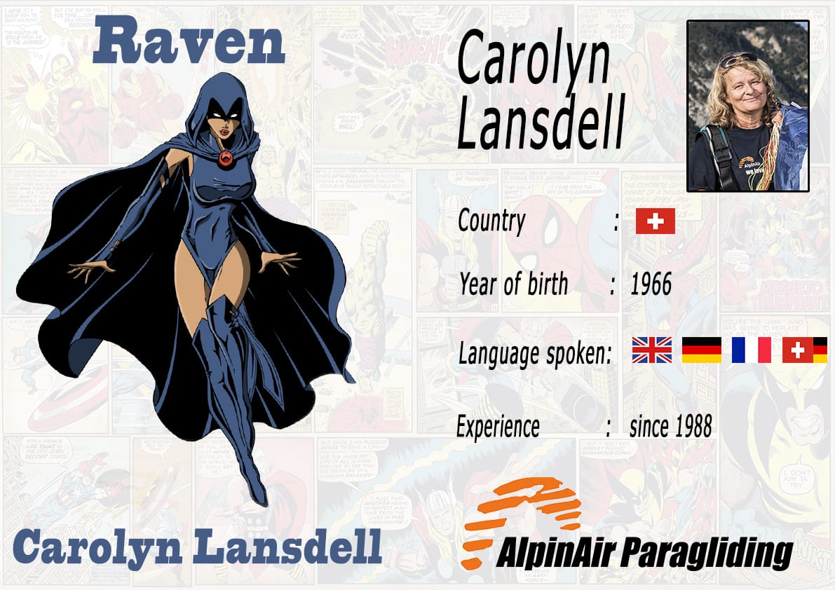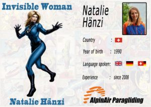 Then we have got the Invisible Woman, Iron Man, Odin and Raven who are the wicked and wonderful paragliders Nathalie Hänzi, Martin Giller, Urs Mäder and Carolyn Lansdell.